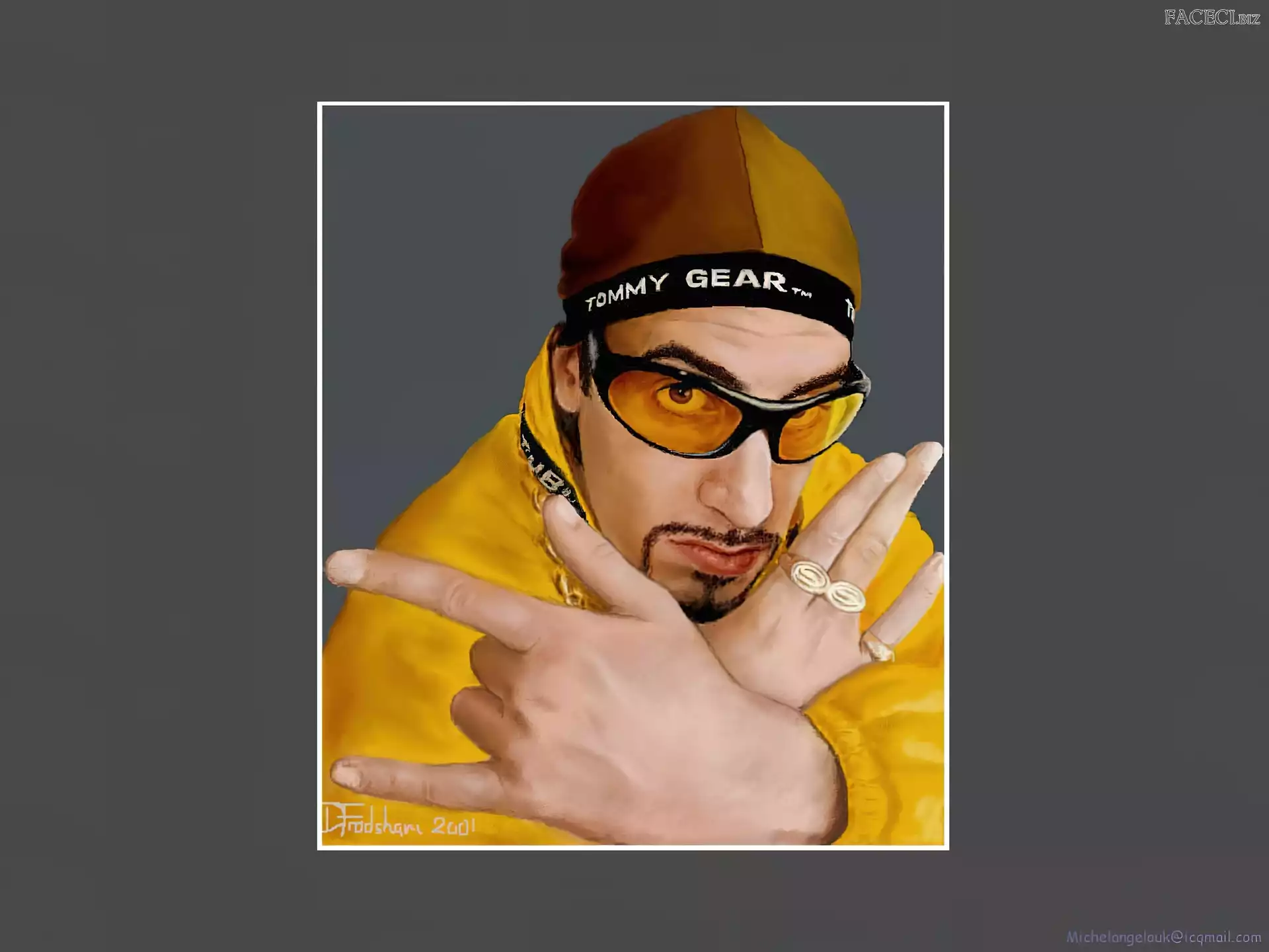 Sasha Baron Cohen, żółty strój złoty strój, Sasha Baron Cohen, okulary Sasha Baron Cohen, gruby łańcuch Sasha Baron Cohen, ali g Sasha Baron Cohen, borat Sasha Baron Cohen, zdjęcia Sasha Baron Cohen, niebieski dres